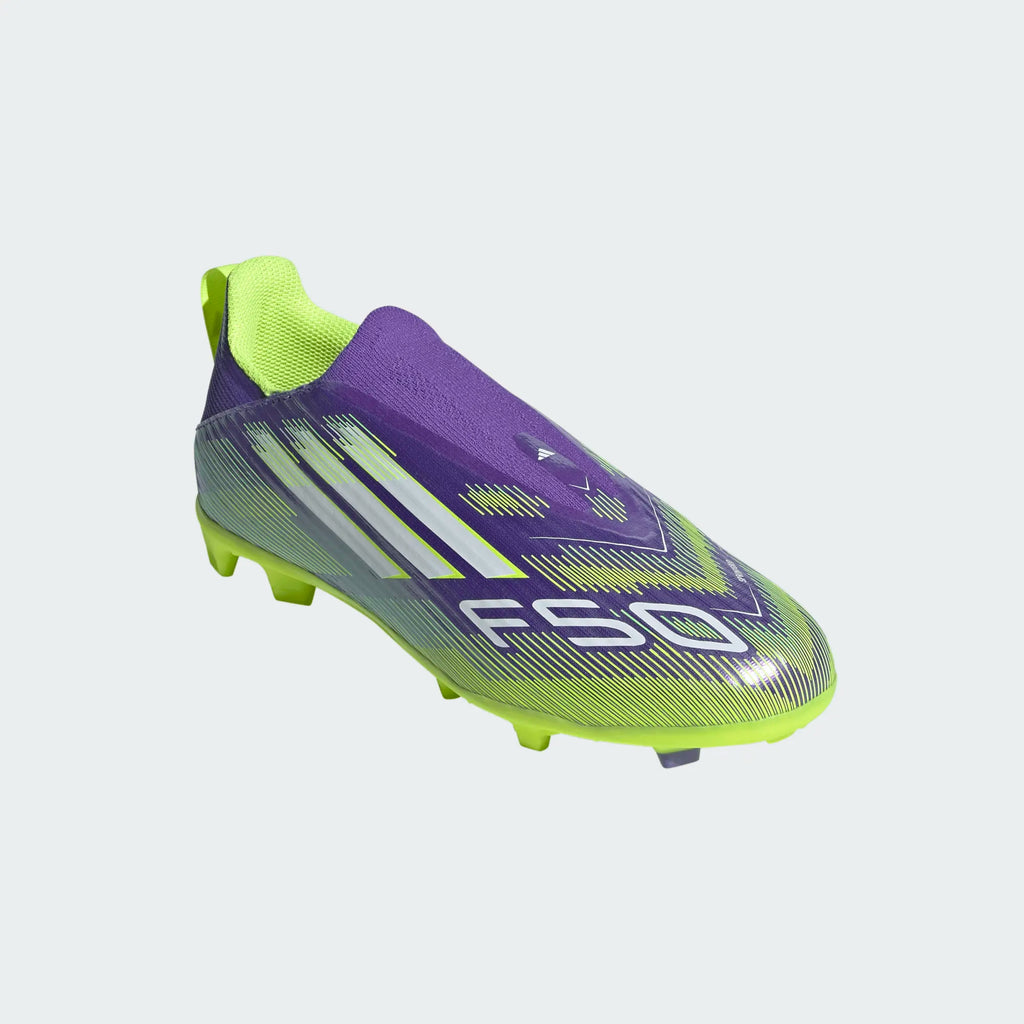 Trova la tua velocità per esprimere davvero te stesso in campo. Prova l’adrenalina con le scarpe da calcio F50 progettate per la velocità. Caratterizzata da un'accattivante stampa Sprintgrid, la tomaia Fiberskin di queste scarpe da calcio League per ragazzi è dotata di un collarino adattativo senza lacci per una chiusura solida e un'azione pulita. L’iconica suola Sprintplate garantisce un ritmo sostenuto su diverse superfici.