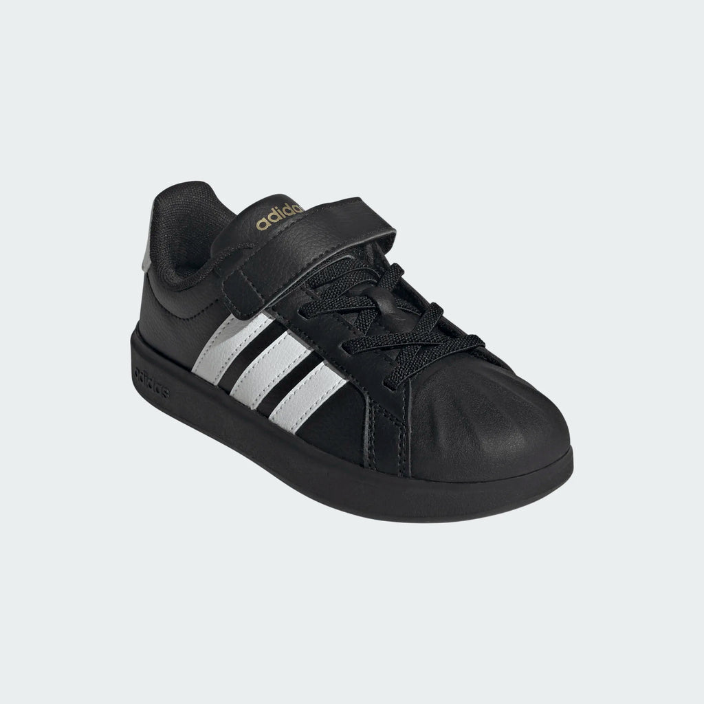 Sia che corrano al parco o che si rilassino a casa, queste scarpe da bambino di adidas mantengono i bambini comodi e alla moda. La suola in gomma aderisce al terreno mentre si muovono, mentre la tomaia in materiale sintetico con la punta a conchiglia in gomma offre una maggiore resistenza. La chiusura a strappo le rende facili da infilare e sfilare, in modo che il bambino sia pronto per l'avventura in qualsiasi momento.