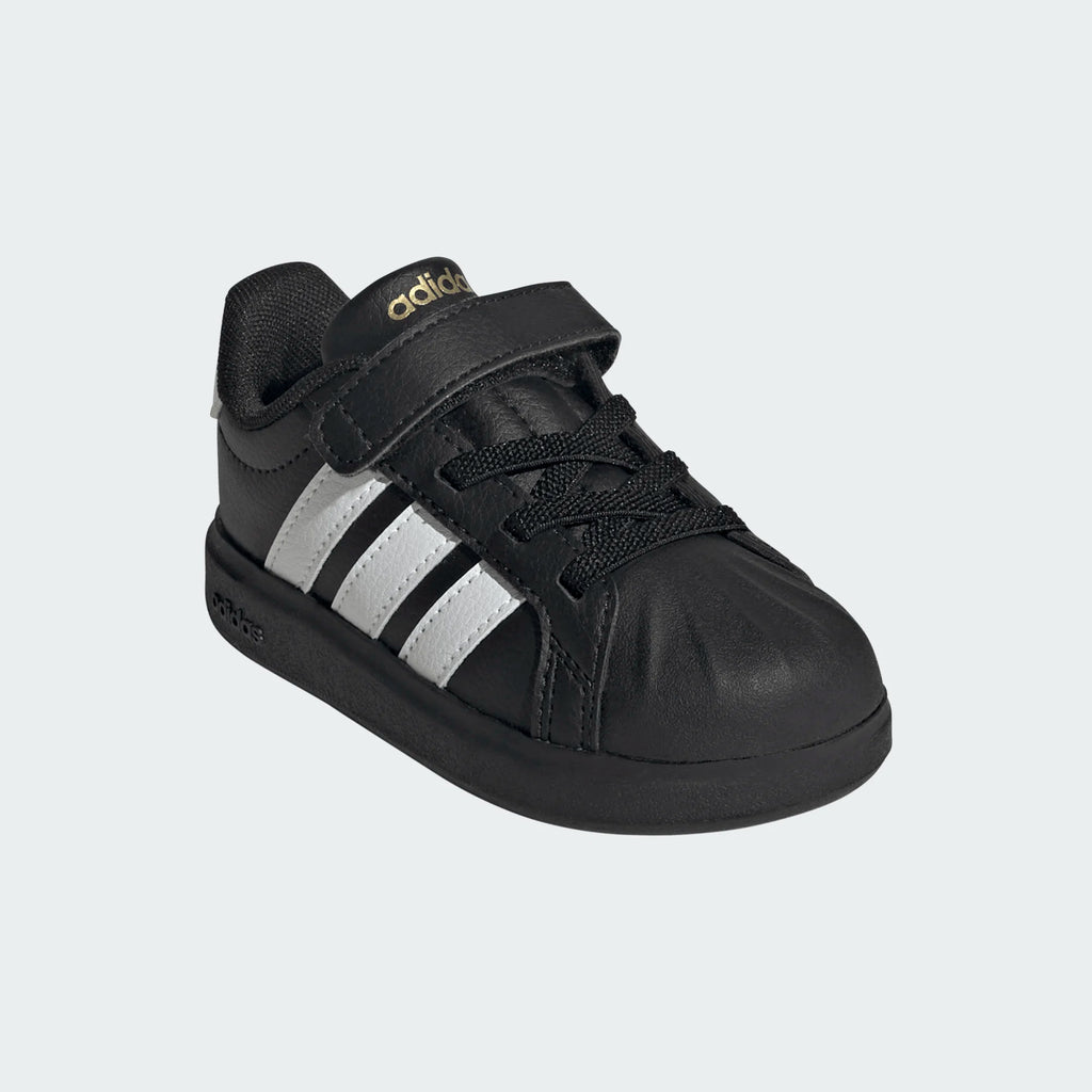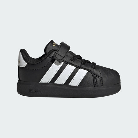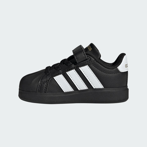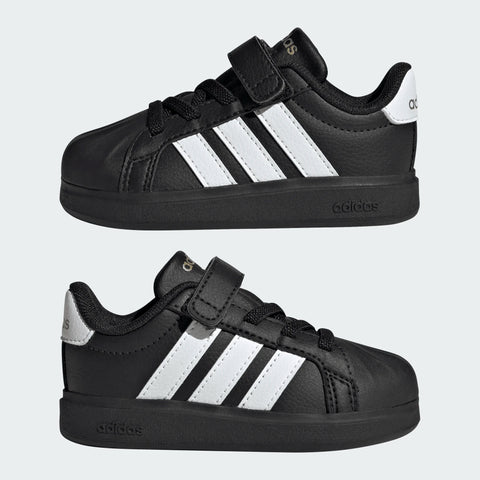 Presenta al tuo piccolo uno stile senza tempo con le scarpe Streettalk per neonati. Pensate sia per la strada che per il gioco. Queste scarpe unisex presentano una punta e una suola in gomma resistente, perfette per i bambini più attivi. I lacci elastici e la chiusura a strappo offrono un supporto aggiuntivo e una calzata facile e comoda. Con le 3 strisce a quarto e il logo sportivo sulla linguetta, queste scarpe fondono stile classico e comfort moderno.