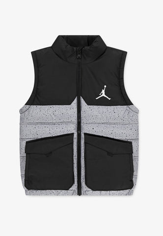 Caratterizzato da una cucitura trapuntata all-over, questo gilet è realizzato in tessuto di poliestere antistrappo ed è imbottito con morbida piuma sintetica che offre un calore avvolgente. Il taglio ampio e la chiusura con zip su tutta la lunghezza consentono di indossare facilmente il capo sopra una felpa con cappuccio o un maglione per un look a strati, mentre l'orlo elasticizzato aiuta a trattenere il calore. Le ampie tasche con pattina e chiusura a strappo consentono di tenere al sicuro i piccoli oggetti, mentre la finitura resistente all'acqua mantiene la pelle asciutta in caso di pioggia leggera.