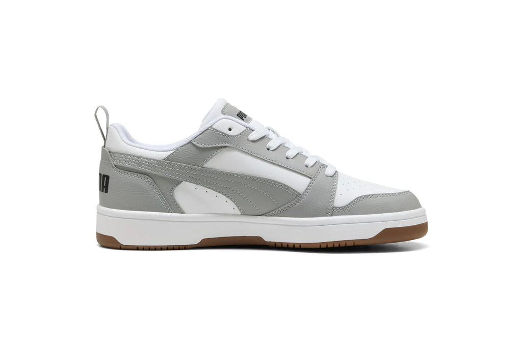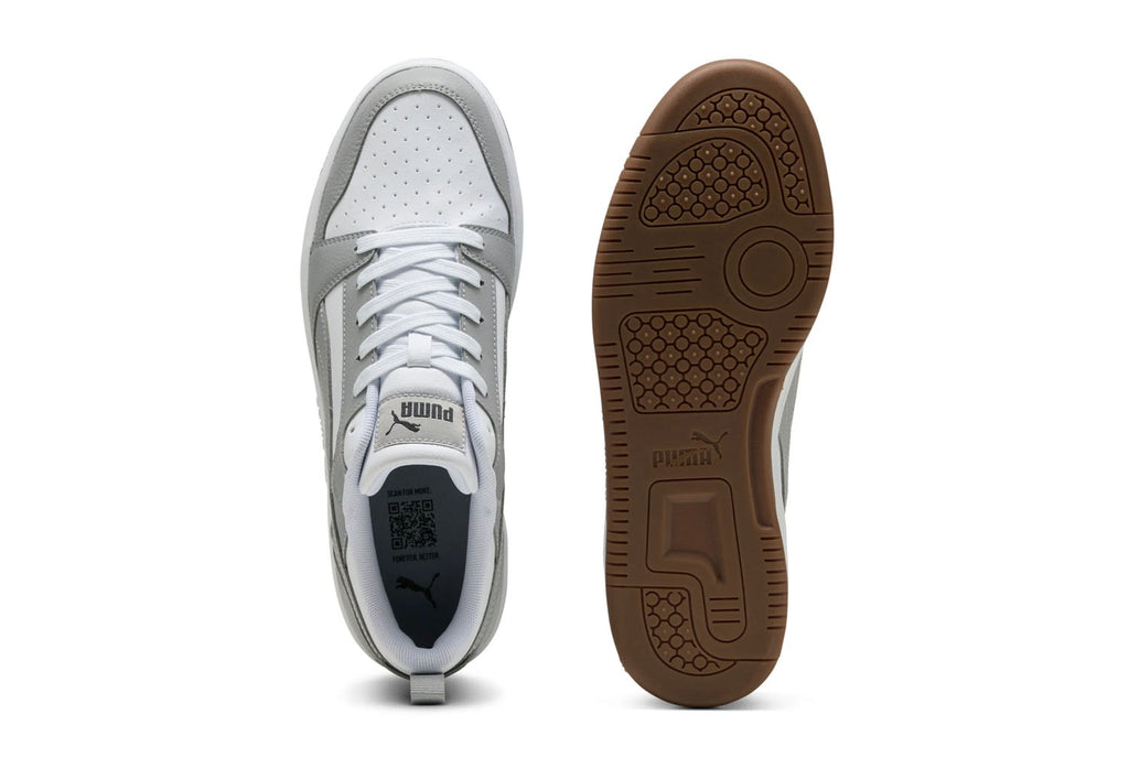 Ispirata al basket, la Rebound Low è tornata per cambiare le regole del gioco. La scarpa V6 offre una linea bassa per l'uso quotidiano dentro e fuori dal campo, una tomaia in morbida pelle bottalata e il marchio PUMA con contrasto cromatico per un effetto a impatto.